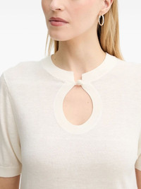 keyhole-neck short-sleeve knit T-shirt Highlights - Off-white - Keyhole neckline - Short sleeves - Ribbed hem Imported Composition Lyocell 60%, Wool 32%, Silk 8% Washing instructions Read Manufacturer Guidelines
