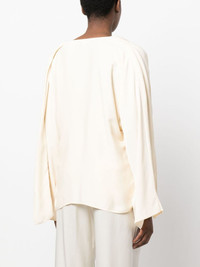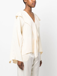 layered-details flared blouse light beige flared design layered details V-neck flute sleeves asymmetric hem Imported Composition Viscose 100% SIZE & FIT Model measurements Height 5 ft 9 in(1.76 m) Bust/Chest 33.07 in(84 cm) Hips 38.58 in(98 cm) Waist 24.8 in(63 cm) FittingInformation Designed to be unstructured, offering a loose fit throughout Made from a midweight non-stretch fabric This piece fits true to size – take your usual size Washing instructions Hand Wash
