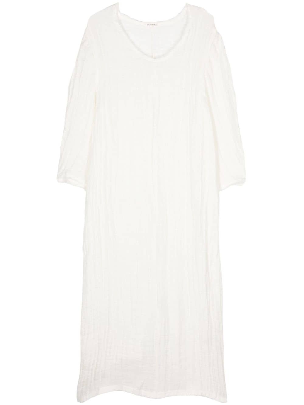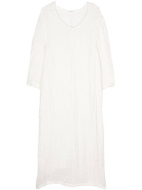 Miolla linen dress Highlights - White - Organic linen - Semi-sheer construction - Frayed edge - Round neck - Long sleeves - Rear slit - Straight hem Imported Composition Organic Linen 100%
