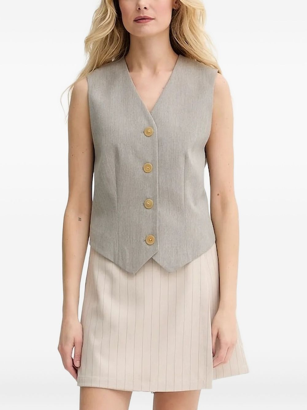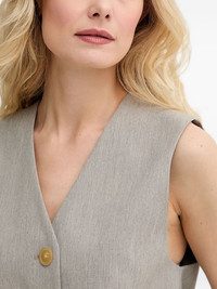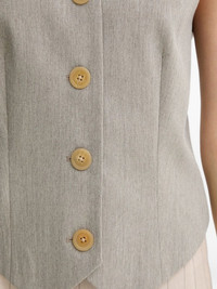 Occa buttoned sleeveless vest Highlights - Grey - V-neck - Sleeveless design - Button fastening - Straight hemline Imported Composition Recycled Polyester 69%, EcoVero Viscose (LENZING) 30%, Elastane 1% Washing instructions Dry Clean Only
