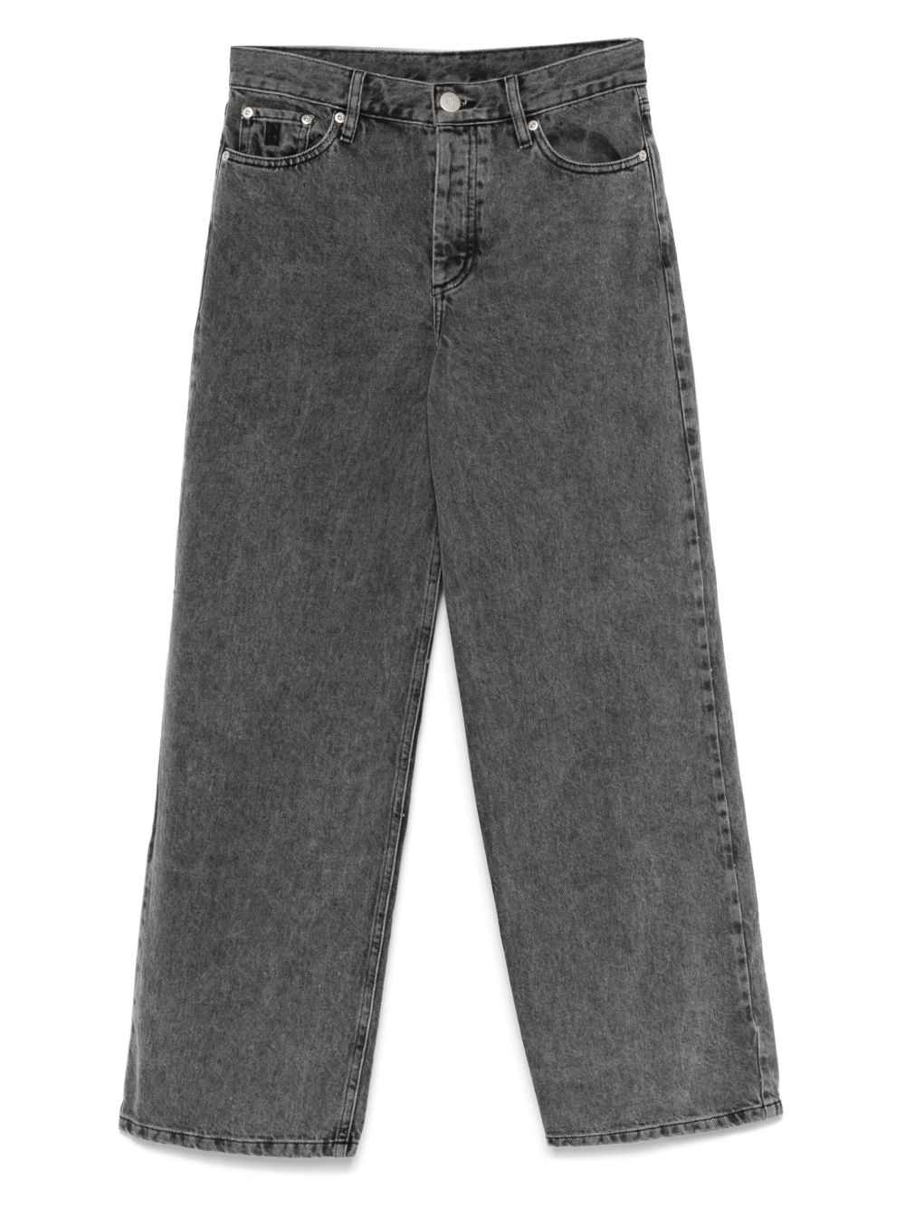organic-cotton jeans Highlights - Grey - Concealed fly and button fastening - Belt loops - Classic five pockets - Straight leg Imported Composition Organic Cotton 100% SIZE & FIT Model measurements Height 5 ft 9 in(1.75 m) Bust/Chest 34.64 in(88 cm) Hips 36.61 in(93 cm) Waist 26.37 in(67 cm) FittingInformation Designed with a wide leg cut, these jeans allow for a close fit at the waist and offer a loose and roomy fit over the leg Sturdy and hard-wearing, this denim piece offers no stretch