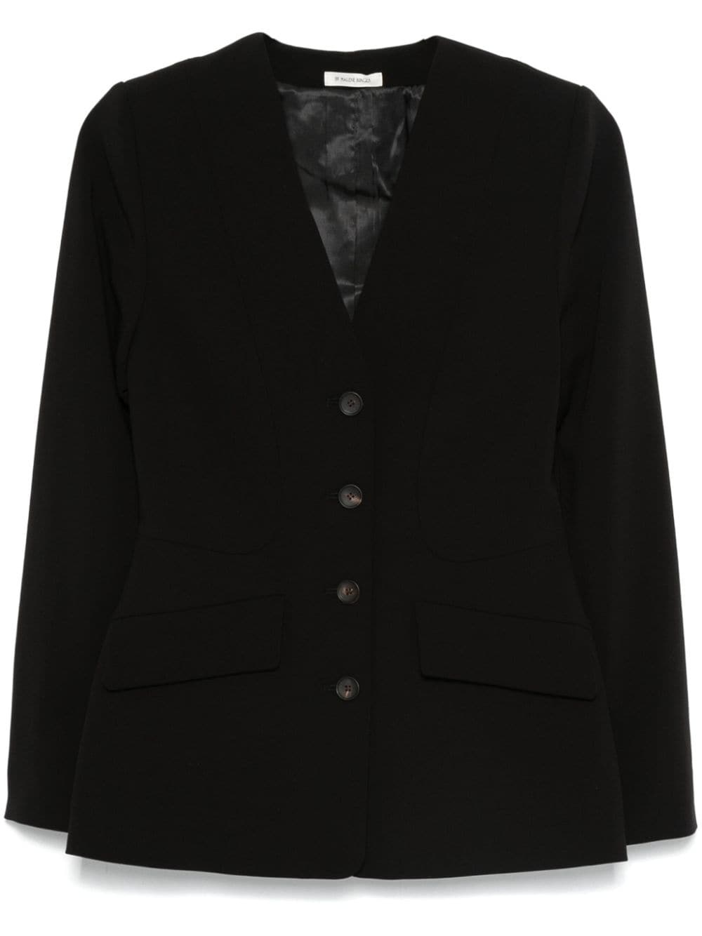 Rilane blazer Highlights - Black - Recycled polyester blend - Panelled design - Front button fastening - Collarless - V-neck - Shoulder pads - Long sleeves - Two side flap pockets - Full lining - Straight hem Imported Composition Outer: Recycled Polyester 64%, Viscose 33%, Elastane 3% Lining: Polyester 52%, Viscose 8% SIZE & FIT Model measurements Height 5 ft 10 in(1.78 m) Bust/Chest 33.07 in(84 cm) Hips 36.61 in(93 cm) Waist 24.8 in(63 cm) FittingInformation Designed for a slim fit that sits just away from the body offering a close yet comfortable fit The internal shoulder pads offer a structured shape Made from a midweight fabric