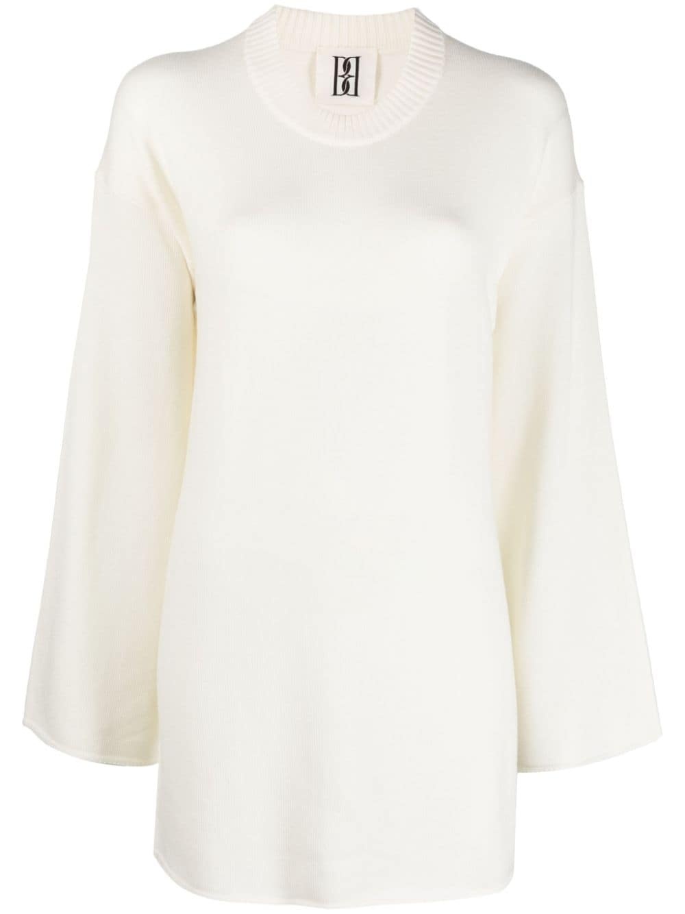 rolled-trim knitted jumper Highlights - Almond beige - Merino - Rolled trim - Drop shoulder - Crew neck - Long sleeves - Straight hem Made in Italy Composition Merino 94%, Elastane 6% Washing instructions Hand Wash
