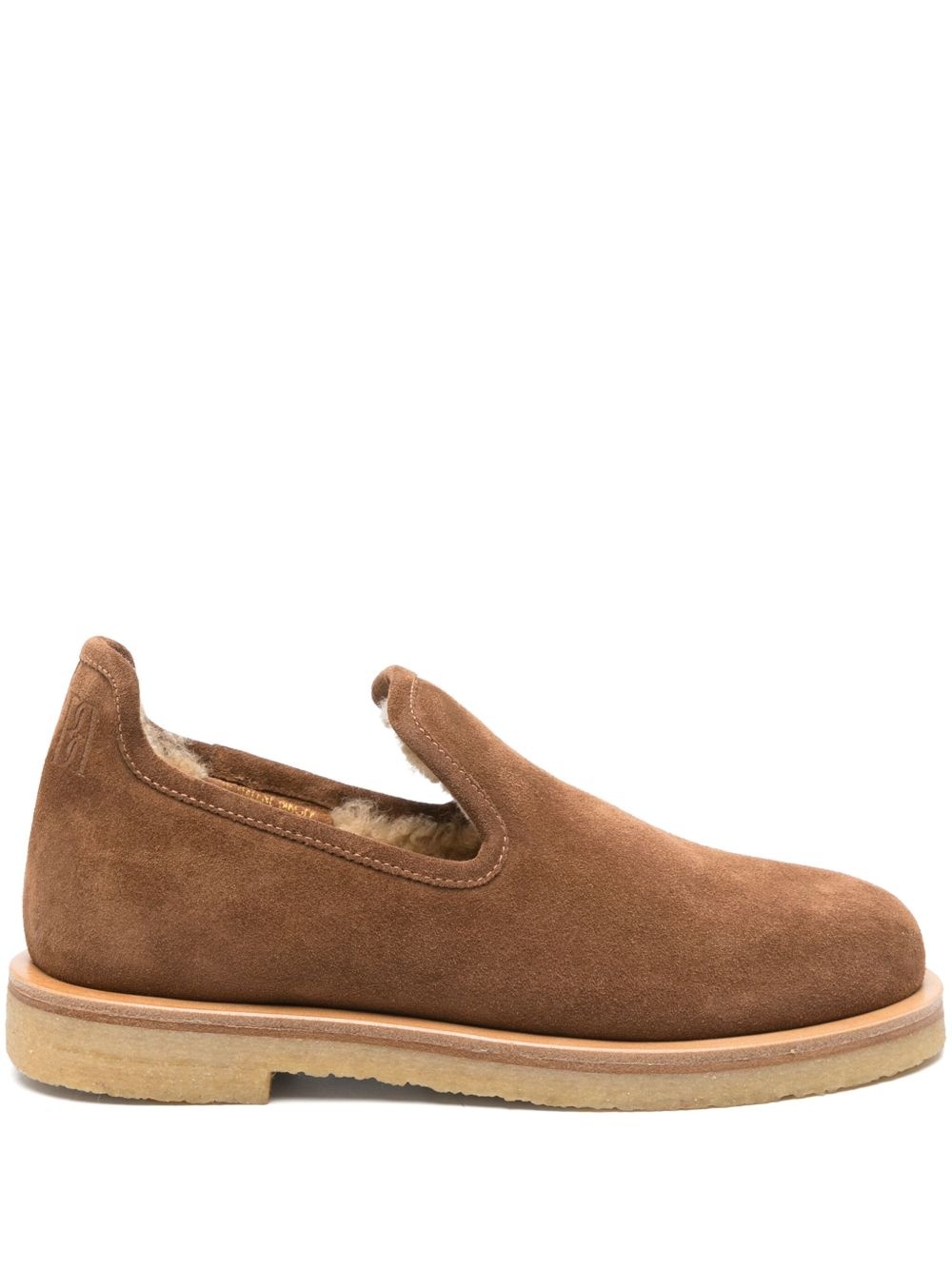 Romine slippers Highlights - Caramel brown - Round toe - Rubber sole - Slip-on style Made in Italy Composition Outer: Calf Suede 100% Sole: Rubber 100% Lining: Sheep Skin/Shearling 100%