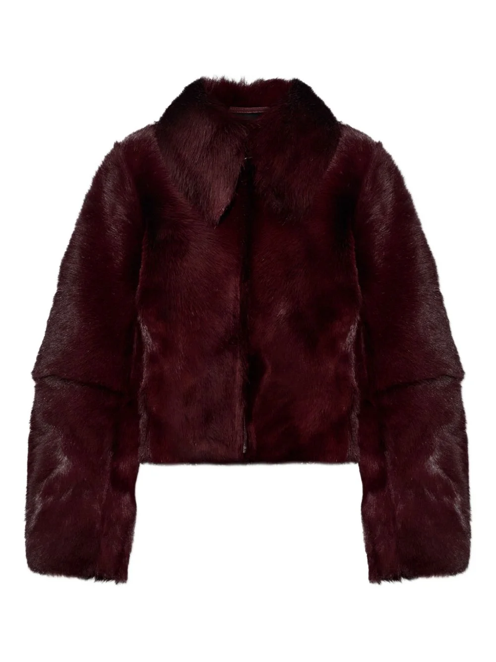 Rowani jacket Highlights - Dark red - Fur texture - Point collar - Long sleeves - Front zip fastening Imported Composition Sheepskin 100% Washing instructions Read Manufacturer Guidelines