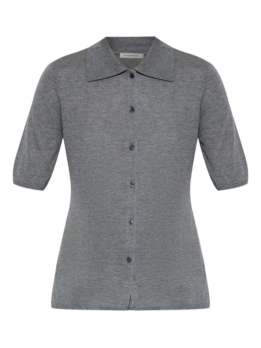 short-sleeve polo top Highlights - Grey - Polo collar - Front button placket - Short sleeves - Knitted fabric Imported Composition Lyocell 60%, Wool 32%, Silk 8% Washing instructions Hand Wash