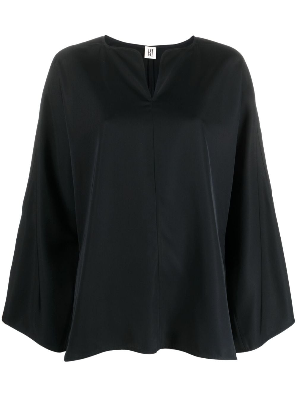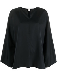 slit-sleeve blouse Highlights - Black - Round split neck - Long slit sleeves - Straight hem Made in United Kingdom Composition Acetate 100% SIZE & FIT Model measurements Height 5 ft 10 in(1.77 m) Bust/Chest 35.03 in(89 cm) Hips 35.03 in(89 cm) Waist 23.62 in(60 cm) FittingInformation Designed to be unstructured, offering a loose fit throughout Made from a midweight non-stretch fabric This piece fits true to size – take your usual size Washing instructions Machine Wash
