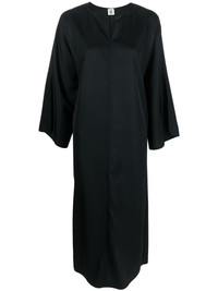 split-neck kaftan midi dress Highlights - Black - Kaftan silhouette - Round split neck - Long sleeves - Below-knee length - Straight hem Imported Composition Acetate 100% SIZE & FIT Model measurements Height 5 ft 10 in(1.78 m) Bust/Chest 33.46 in(85 cm) Hips 36.22 in(92 cm) Waist 23.22 in(59 cm) FittingInformation Designed to be unstructured, offering a loose fit throughout Made from a midweight non-stretch fabric This piece fits true to size – take your usual size Washing instructions Machine Wash