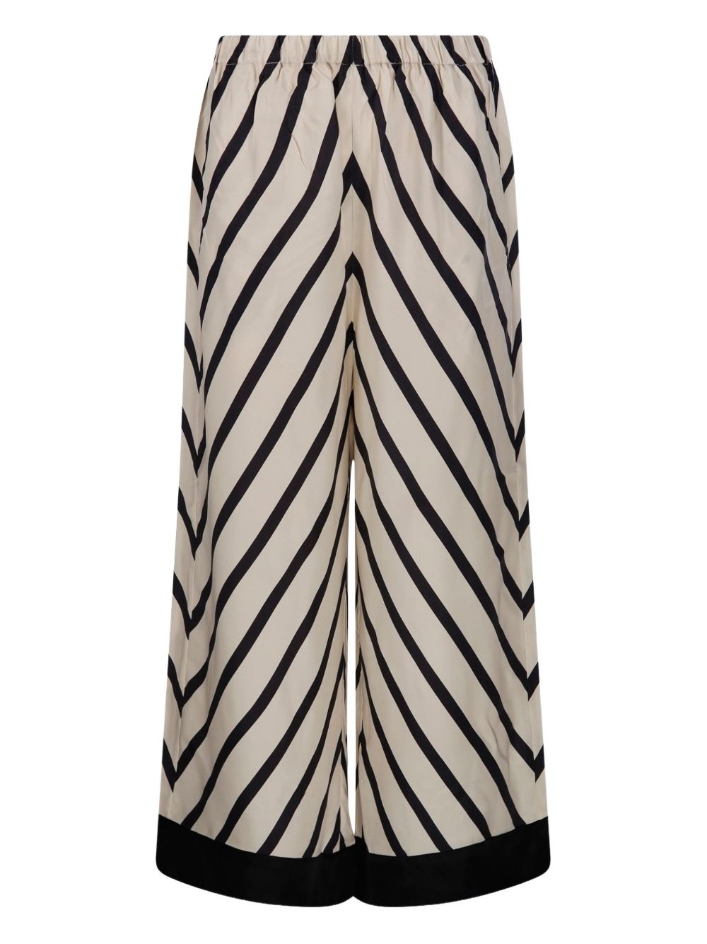striped wide-leg trousers Highlights - Cream base - Black stripes - Elasticated waistband - Contrasting hem - Straight leg - Flowing silhouette Imported Composition Cupro 57%, Viscose 43%