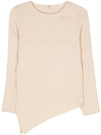 textured asymmetric top Highlights - Blush beige - Ecovero™ blend - Textured finish - Round neck - Long sleeves - Side slit - Asymmetric hem - Concealed rear zip fastening Imported Composition Viscose 100% SIZE & FIT FittingInformation Designed for a slim fit that sits just away from the body offering a close yet comfortable fit Made from a midweight non-stretch fabric, this piece offers minimal elasticity when worn This piece fits true to size – take your usual size