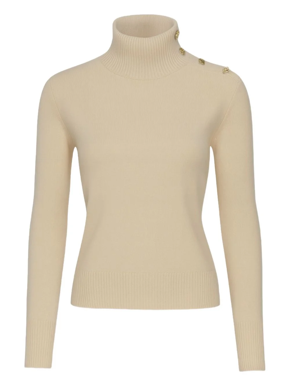 Vanille wool sweater Highlights - Beige - Gold-tone hardware - Roll-neck - Shoulder button detailing - Long sleeves - Knitted Imported Composition Wool 100% Washing instructions Hand Wash