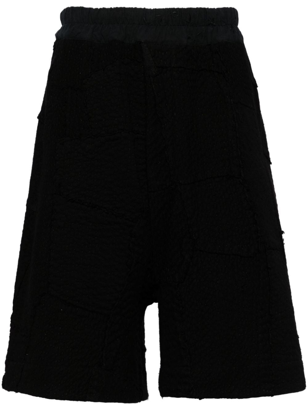 elasticated-waistband cotton shorts Highlights - Black - Cotton - Elasticated waistband - Two side slit pockets - Rear patch pocket - Knee-length Made in United Kingdom Composition Cotton 100% SIZE & FIT Model measurements Height 6 ft 2 in(1.89 m) Bust/Chest 37.4 in(95 cm) Hips 36.61 in(93 cm) Waist 28.34 in(72 cm) FittingInformation Designed with a wide leg, offering a loose and roomy fit Adjust this piece’s waistband to your preference using the drawstring Made from a heavyweight non-stretch fabric This piece fits true to size – take your usual size