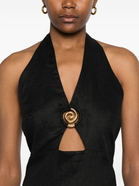 Clara maxi dress Highlights - Black - Concealed rear zip fastening - Halterneck tie fastening Imported Composition Lining: Cotton 100% Outer: Linen/Flax 100% SIZE & FIT Model measurements Height 5 ft 11 in(1.8 m) Bust/Chest 31.49 in(80 cm) Hips 36.61 in(93 cm) Waist 24.4 in(62 cm) Washing instructions Hand Wash