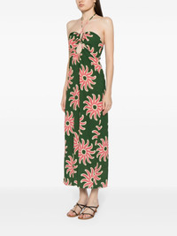 Roge graphic-print midi dress Highlights - Dark green/multicolour - Ecovero™ blend - A-line - All-over graphic print - Cut-out detailing - Sweetheart neck - Concealed rear zip fastening - Halterneck - Scoop back - Straight hem - Mid-length Imported Composition Viscose 100% SIZE & FIT Model measurements Height 5 ft 10 in(1.78 m) Bust/Chest 30.31 in(77 cm) Hips 34.64 in(88 cm) Waist 24.01 in(61 cm) FittingInformation Designed for a slim fit that sits just away from the body offering a close yet comfortable fit Made from a midweight non-stretch fabric This piece fits true to size – take your usual size