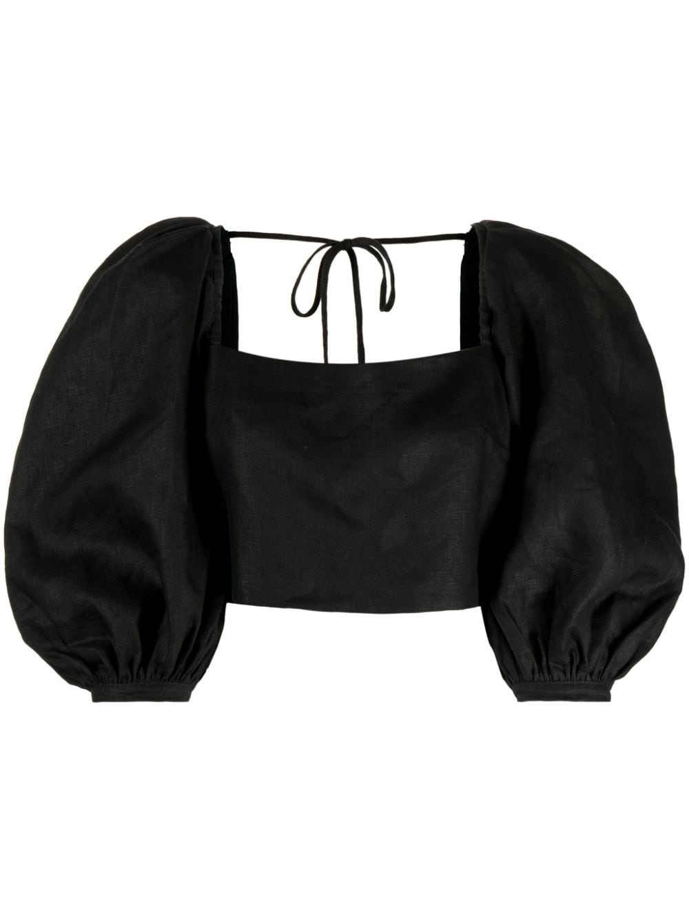 Sami cropped linen blouse Highlights - Black - Linen/flax - Smocked panel - Seam detailing - Square neck - Rear zip and tie fastening - Three-quarter length puff sleeves - Cropped Imported Composition Outer: Linen/Flax 100% Lining: Cotton 100% SIZE & FIT Model measurements Height 5 ft 10 in(1.78 m) Bust/Chest 30.31 in(77 cm) Hips 34.64 in(88 cm) Waist 24.01 in(61 cm) FittingInformation Designed for a close fit throughout Made from a midweight non-stretch fabric This piece fits close in all sizes – take your usual size