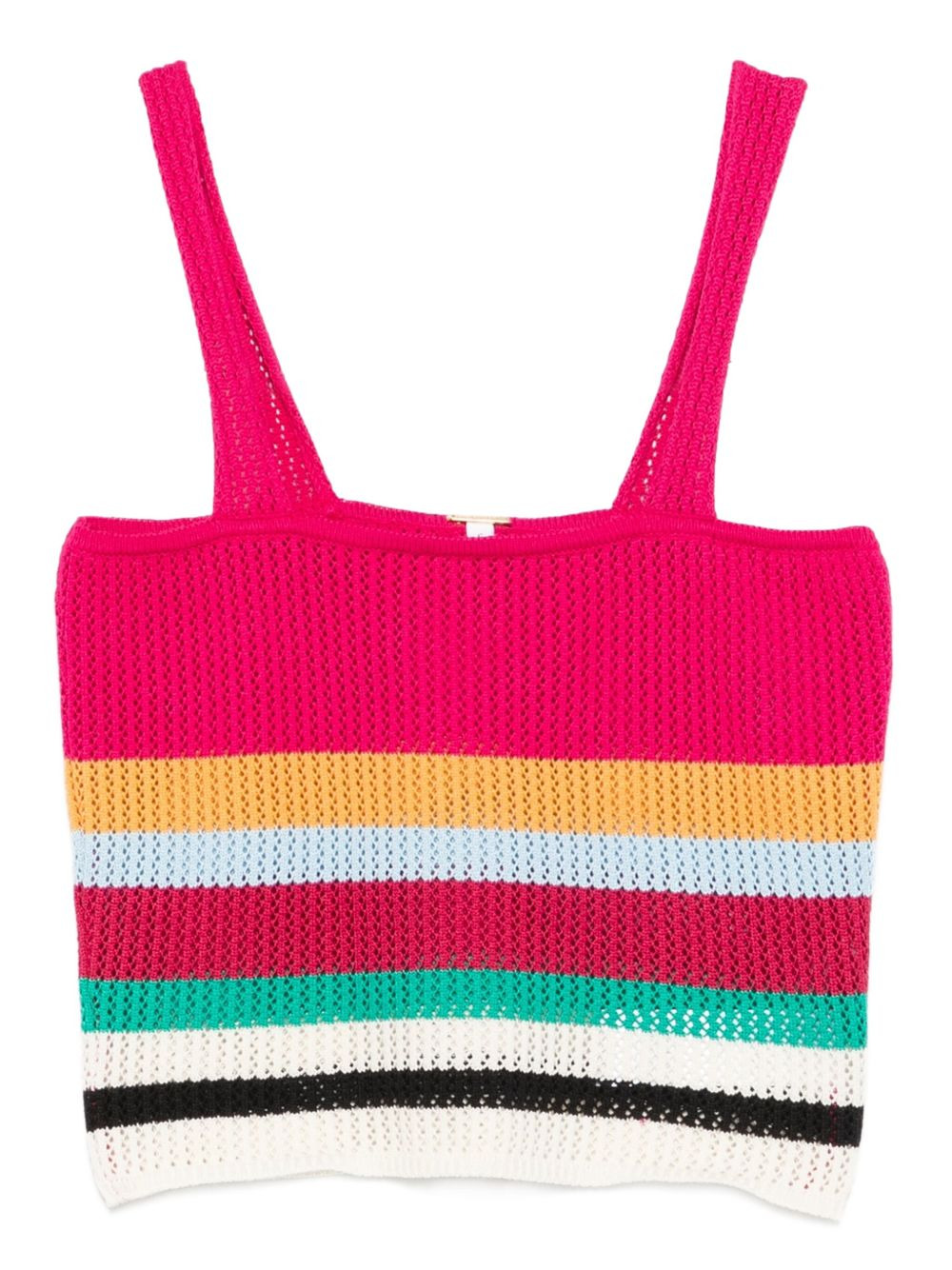 Sun crop top Highlights - Fuchsia pink - Square neck - Sleeveless - Horizontal stripe pattern Imported Composition Cotton 63%, Viscose 23%, Acrylic 7%, Alpaca Wool 7% SIZE & FIT Model measurements Height 5 ft 11 in(1.8 m) Bust/Chest 31.49 in(80 cm) Hips 36.61 in(93 cm) Waist 24.4 in(62 cm) Washing instructions Hand Wash
