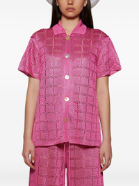 short-sleeve grid-pattern shirt Highlights - Pink - Short sleeves - Grid pattern - Button fastening - Crochet knit Imported Composition Viscose 100% Washing instructions Read Manufacturer Guidelines