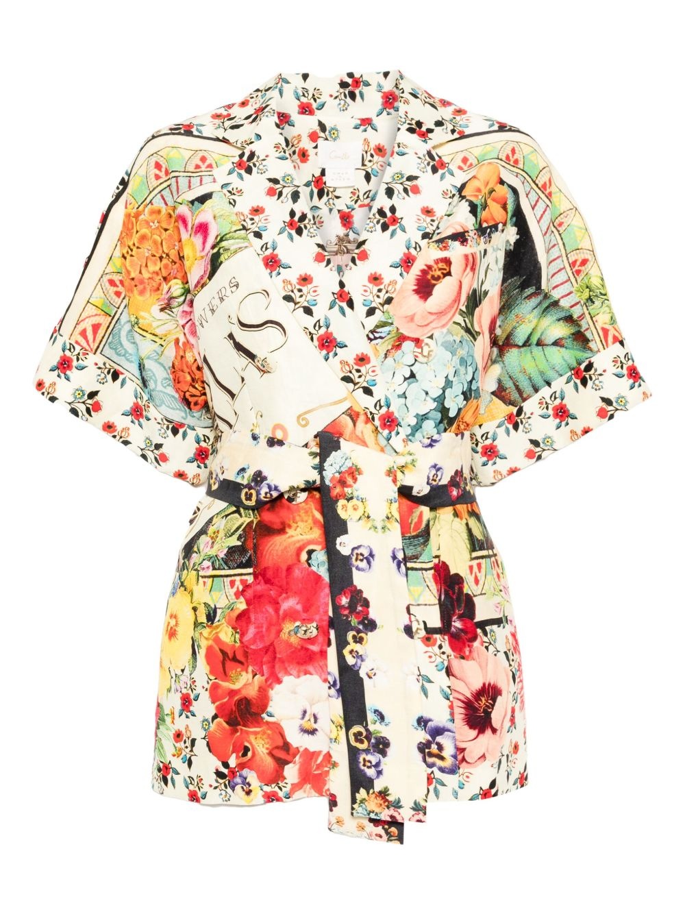 aromatic amor double-breasted jacket Highlights - Light yellow - Front button fastening - Two side slit pockets - Detachable belt - Short sleeves Imported Composition Lining: Cupro 100% Outer: Linen/Flax 80%, Silk 20% Washing instructions Dry Clean Only