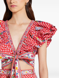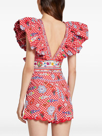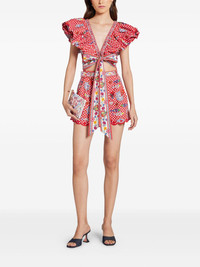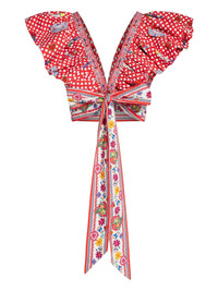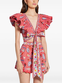 frill-detail wrap top Highlights - Red - Check print - Floral motifs - Deep v-neck - Frilled sleeves - Wrap tie detail - Scalloped edges Imported Composition Organic Cotton 100%