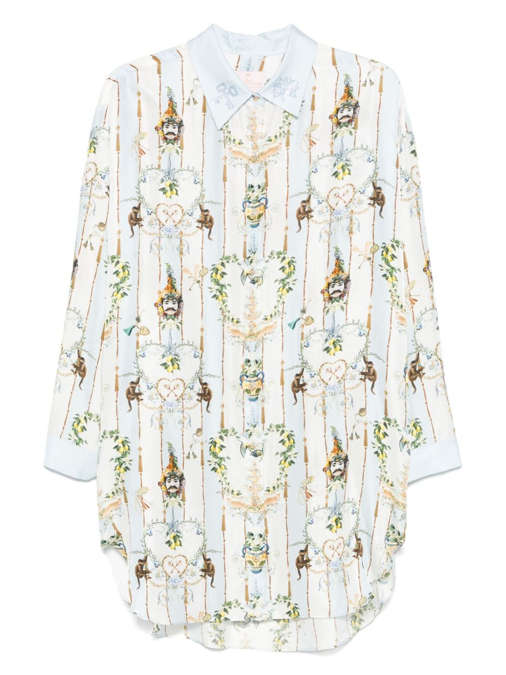 graphic-print silk shirt Highlights - Blue - All-over graphic print - Front button fastening - Long sleeves Imported Composition Silk 100% SIZE & FIT Model measurements Height 5 ft 9 in(1.75 m) Bust/Chest 32.67 in(83 cm) Hips 36.22 in(92 cm) Waist 24.8 in(63 cm) FittingInformation Designed to be unstructured, offering a loose fit throughout Made from a midweight non-stretch fabric Washing instructions Dry Clean Only
