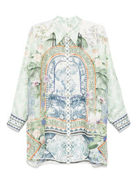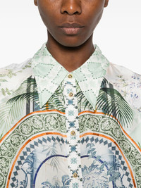Jardim Party shirt Highlights - Sage green - Front button fastening - Buttoned-cuff sleeves - All-over graphic print - Crystal embellishment Imported Composition Rhinestone 100%, Silk 100% SIZE & FIT Model measurements Height 5 ft 10 in(1.78 m) Bust/Chest 31.49 in(80 cm) Hips 37 in(94 cm) Waist 23.62 in(60 cm) FittingInformation Designed to be unstructured, offering a loose fit throughout Made from a lightweight non-stretch fabric Washing instructions Dry Clean Only