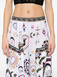 Nubian Wonderland trousers Highlights - White - Rear elasticated waistband - Two side patch pockets - Box-pleat detail - Crystal embellishment Imported Composition Linen/Flax 100% SIZE & FIT Model measurements Height 5 ft 10 in(1.78 m) Bust/Chest 33.85 in(86 cm) Hips 36.61 in(93 cm) Waist 26.77 in(68 cm) FittingInformation Designed with a wide-leg cut, these trousers allow for a close fit at the waist and offer a loose and roomy fit over the leg The partially elasticated waistband offers increased movement and comfort at the waist Made from a midweight non-stretch fabric
