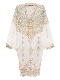 Ottoman Dynasty cape Highlights - Ivory - Open front - Buttoned cuffs - Rhinestone embellishment Imported Composition Silk 100% SIZE & FIT Measurement BUST 43.3 in(110 cm) Shoulder Width 16.53 in(42 cm) SLEEVE LENGTH 35.43 in(90 cm) WAIST 43.3 in(110 cm) Washing instructions Dry Clean Only
