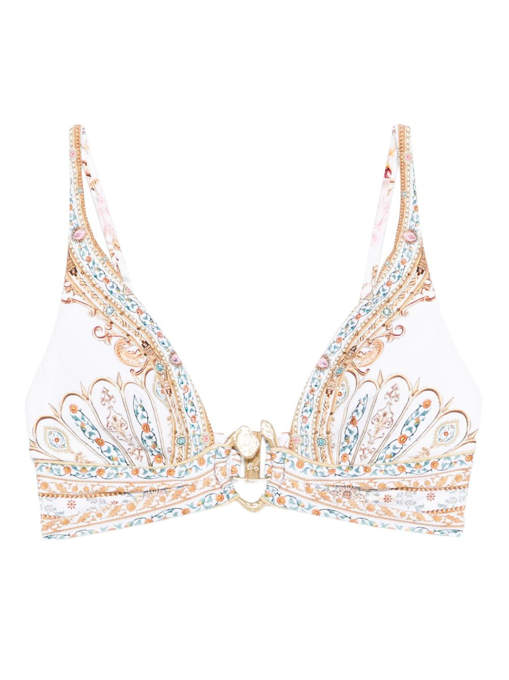 paisley-print buckle bikini top Highlights - Off-white - Paisley print - Gold-tone buckle - Adjustable straps - Be mindful to try on swimwear over your own garments. Imported Composition Base: Recycled Polyamide 79%, Elastane 21%