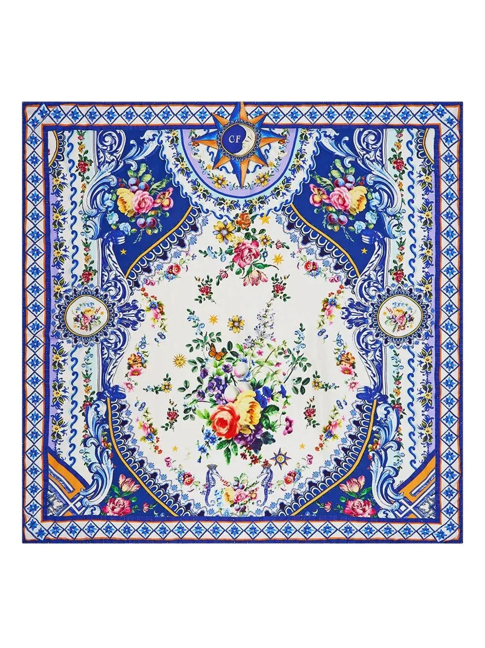 patterned silk scarf Highlights - Blue - Floral print - Square shape Imported Composition Silk 100% SIZE & FIT Measurement LENGTH 42.12 in(107 cm) WIDTH 42.12 in(107 cm) Washing instructions Read Manufacturer Guidelines