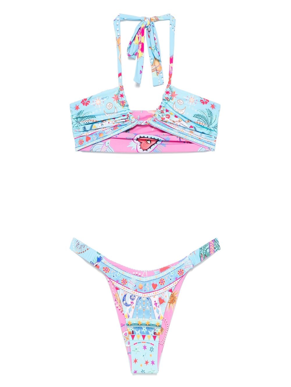 reversible printed bikini Highlights - Cerulean blue - Halterneck tie fastening - Elasticated panelling - Be mindful to try on swimwear over your own garments. Imported Composition Outer: Recycled Nylon 80%, Elastane 20% Lining: Recycled Nylon 80%, Elastane 20%