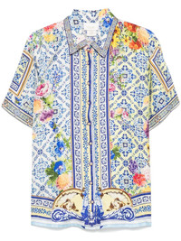 silk shirt Highlights - Royal blue - Front button fastening - Short side slits - Classic collar - Short sleeves Imported Composition Silk 100% SIZE & FIT Model measurements Height 5 ft 9 in(1.75 m) Bust/Chest 31.88 in(81 cm) Hips 34.64 in(88 cm) Waist 24.01 in(61 cm) FittingInformation Designed to be unstructured, offering a loose fit throughout Made from a midweight non-stretch fabric