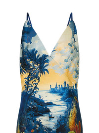Song Of Saint Anthony dress Highlights - Blue - V-neck - Full-length - Landscape print - Slip design Imported Composition Silk 100% Washing instructions Read Manufacturer Guidelines
