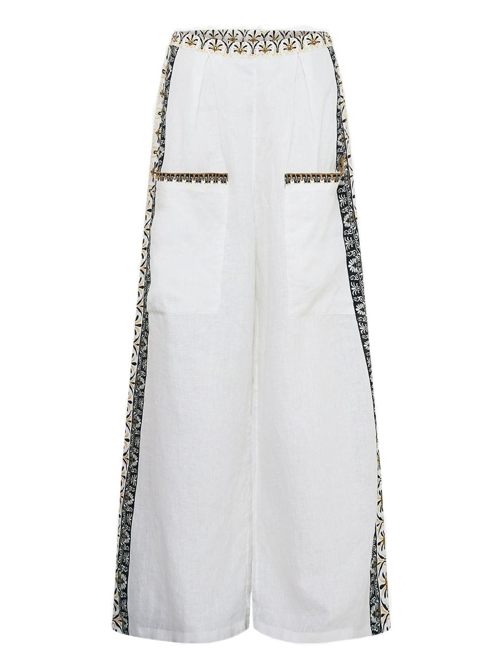 Temples Of Dendara wide-leg trousers Highlights - White - Side patterned stripe - Front pockets - Linen fabric Imported Composition Base: Organic Linen 100% Washing instructions Hand Wash