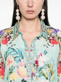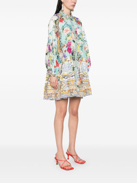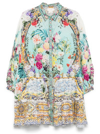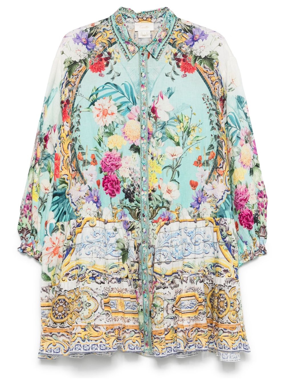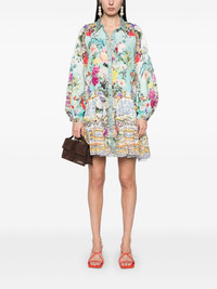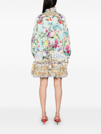 tiered long-sleeve mini dress Highlights - Cyan blue - Front button fastening - Elasticated cuffs - Two side slit pockets - All-over floral print Imported Composition Linen/Flax 100% SIZE & FIT Model measurements Height 5 ft 10 in(1.78 m) Bust/Chest 33.46 in(85 cm) Hips 36.22 in(92 cm) Waist 23.22 in(59 cm) FittingInformation Designed to be unstructured, offering a loose fit throughout Made from a midweight non-stretch fabric