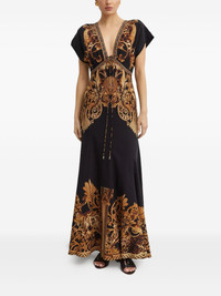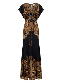 V-neck maxi dress Highlights - Black - Ornamental print - Crystal embellishments - Deep v-neck - Short sleeves - Drawstring detail Imported Composition Viscose 97%, Elastane 3% Washing instructions Read Manufacturer Guidelines