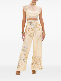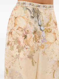 wide-leg trousers Highlights - Beige - Elasticated waistband - Two side slit pockets - All-over floral print Imported Composition Viscose 65%, Silk 35%