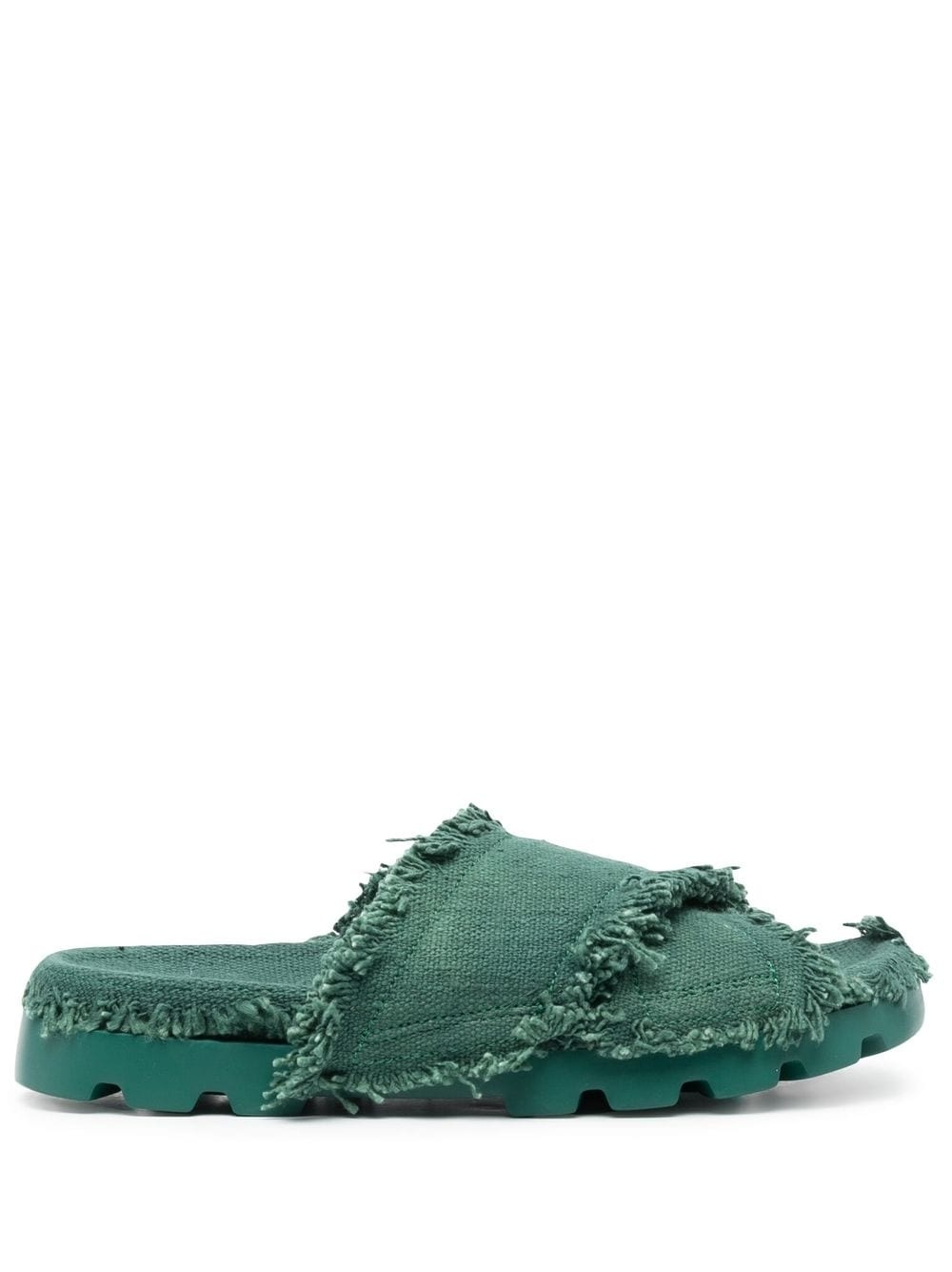 Brutus sandals Highlights - Dark green - Cotton - Frayed edge - Crossover strap at the toe - Slip-on style - Backless - Rubber lug sole Imported Composition Cotton 100% SIZE & FIT Measurement HEEL 1.57 in(4 cm) Sole height 0.98 in(2.5 cm)