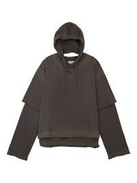 double-layered hoodie Highlights - Dark brown - Double layer - Hooded neckline - Long sleeves - Raw edges Imported Composition Base: Organic Cotton 100% Washing instructions Read Manufacturer Guidelines