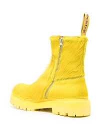 Eki calf-hair ankle boots yellow calf hair pull-tab at the heel round toe side zip fastening branded calf leather insole chunky rubber lug sole Imported Composition Sole: Rubber 100% Lining: Calf Leather 100% Outer: Calf Hair 100% SIZE & FIT Measurement CIRCUMFERENCE 9.84 in(24.9 cm) HEEL 1.96 in(5 cm) HEIGHT 6.69 in(17 cm) Sole height 1.37 in(3.5 cm)