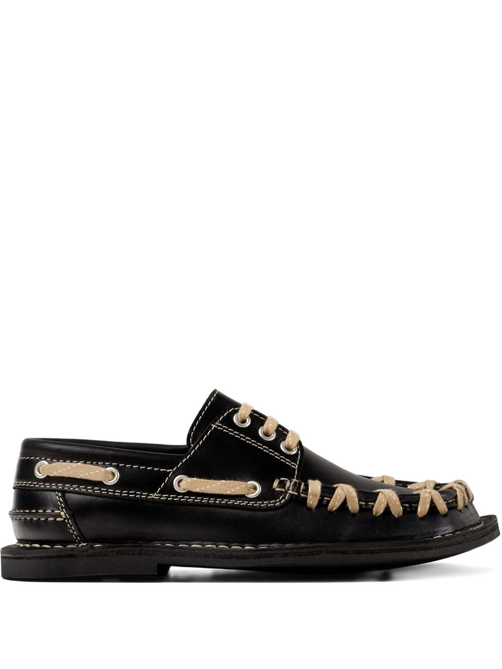 Eki leather lace-up boat shoes Highlights - Black - Leather upper - Lace-up fastening - Stitched detail - Leather laces - Round toe Imported Composition Outer: Smooth Leather 100% Lining: Smooth Leather 100% Sole: Rubber 100%