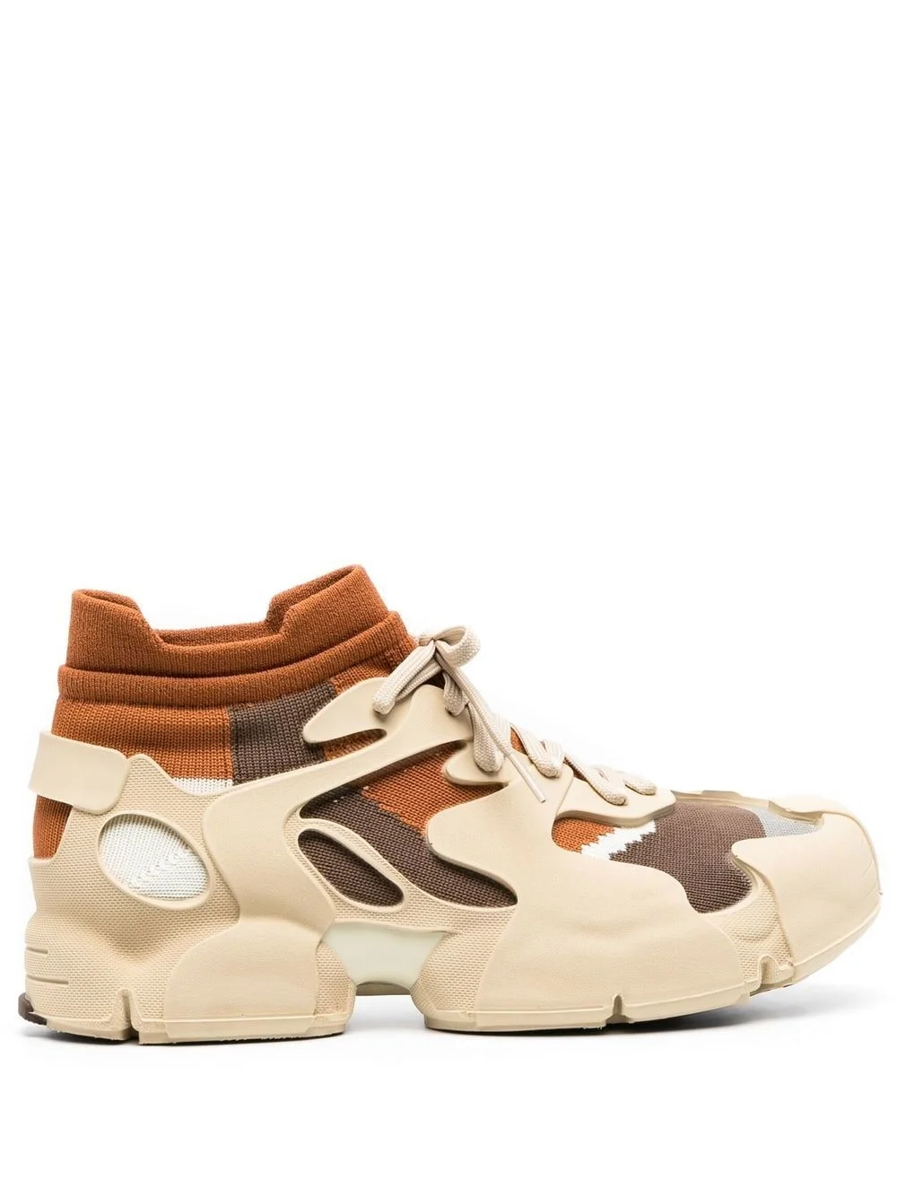 panelled sneakers Highlights - Beige - Front lace-up fastening - Padded ankle - Flat rubber sole - Round toe Imported Composition Outer: Fabric 51%, Polyurethane 49% Sole: Polyurethane 90%, Thermoplastic Polyurethane (TPU) 10% Lining: Sorona 52%, Fabric 28%, Recycled Polyester 20% SIZE & FIT Measurement HEEL 1.18 in(3 cm) Sole height 0.78 in(2 cm)