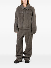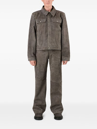 leather jacket Highlights - Grey - Concealed front fastening - Chest flap pockets - Two side inset pockets - When buying this unisex item, keep in mind that it is graded in standard men's sizing. Imported Composition Nubuck Leather 100%