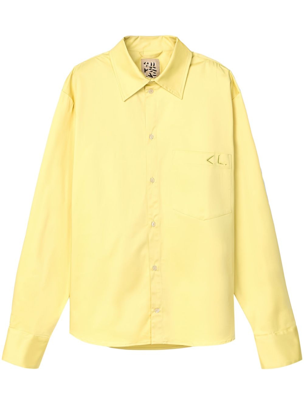 logo-print shirt Highlights - Pastel yellow - Front button fastening - Chest patch pocket - Buttoned cuffs - When buying this unisex item, keep in mind that it is graded in standard men's sizing. Imported Composition Cotton 94%, Recycled Elastane 6% Washing instructions Read Manufacturer Guidelines