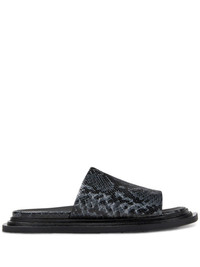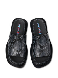 Nada slides Highlights - Black - Slip-on style - Flat sole - Square toe Imported Composition Sole: Rubber 70%, Polyethylene vinyl acetate (PEVA) 30% Outer: Snake Print Leather 100% Lining: Leather 100%