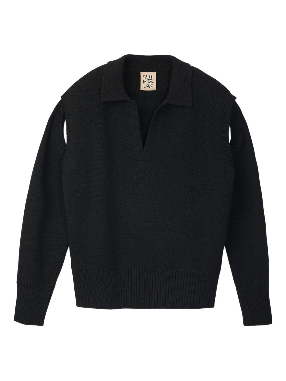 polo-neck split-sleeves sweater Highlights - Black - Polo neck - Long split sleeves - Ribbed hem - Wool Imported Composition Wool 100%, Fabric 100% Washing instructions Read Manufacturer Guidelines
