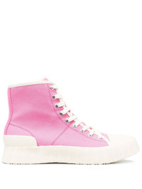 Roz high-top sneakers Highlights - Pink/white - Recycled cotton/recycled polyester - Canvas - Round toe - Front lace-up fastening - Logo patch at the tongue - Rubber toecap - Flat rubber sole Imported Composition Outer: Recycled Cotton 90%, Rubber 10% Lining: Recycled Polyester 100%, Recycled Cotton 100% Sole: Rubber 100% SIZE & FIT Measurement HEEL 1.37 in(3.5 cm) HEIGHT 5.31 in(13.5 cm) Sole height 0.98 in(2.5 cm)