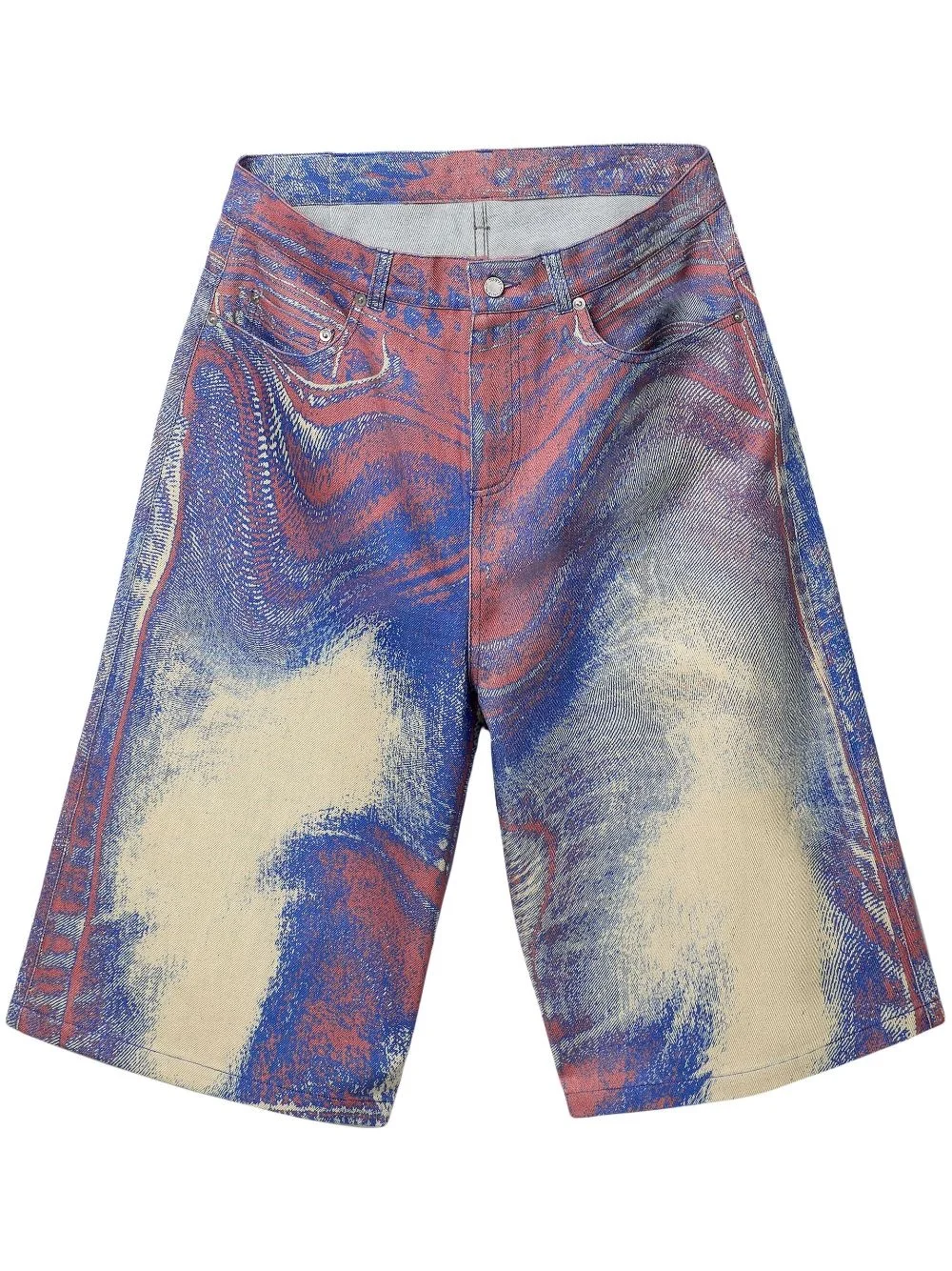 swirl-print denim shorts Highlights - Indigo/multicolour - Organic cotton - Recycled cotton - Denim - Swirl print - Patch detail - Belt loops - Concealed fly and button fastening - Classic five pockets - Straight hem - When buying this unisex item, keep in mind that it is graded in standard men's sizing. Imported Composition Organic Cotton 76%, Recycled Cotton 24% Washing instructions Hand Wash