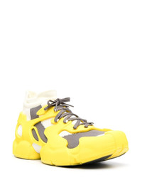 Tossu chunky sneakers Renowned for playful and creative designs, Spanish brand CamperLab presents the Tossu sneakers in an off-white, yellow and grey colourway. They're crafted with a sock-like upper and encased with a cage-like overlay. Highlights - Yellow/grey/off-white - Recycled polyester - Panelled design - Mesh panelling - Water-repellent - Sock-style ankle - Front lace-up fastening - Branded insole - Chunky rubber sole Imported Composition PVC 100% SIZE & FIT Measurement HEEL 1.77 in(4.5 cm) Sole height 1.18 in(3 cm)