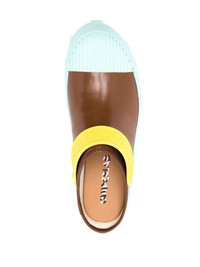 Traktori clogs CamperLab puts a characteristically playful spin on traditional loafers with the Traktori model. The backless construction is complete with a practical rubber toecap and chunky rubber sole. Highlights - Brown/yellow/light blue - Calf leather - Rubber toecap - Colour-block design - Backless - Ankle strap - Chunky rubber sole Imported Composition Leather 100% SIZE & FIT Measurement HEEL 1.96 in(5 cm) Sole height 1.77 in(4.5 cm)