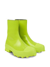 Traktori Boot Shoes Green "Green" Highlights - Fluorescent green - Calf leather - Tonal design - Ribbed detailing - Round toe - Tonal toecap - Side zip fastening - Canvas lining - Branded insole - Ortholite® cushioning - Chunky rubber sole - Toothed rubber outsole Imported Composition Outer: Rubber 100%, Calf Leather 100% Lining: Fabric 64%, Calf Leather 19%, Recycled Polyester 17% Sole: Rubber 100% SIZE & FIT Measurement CIRCUMFERENCE 11.41 in(29 cm) HEEL 2.55 in(6.5 cm) HEIGHT 7.08 in(18 cm) PLATFORM 1.57 in(4 cm)